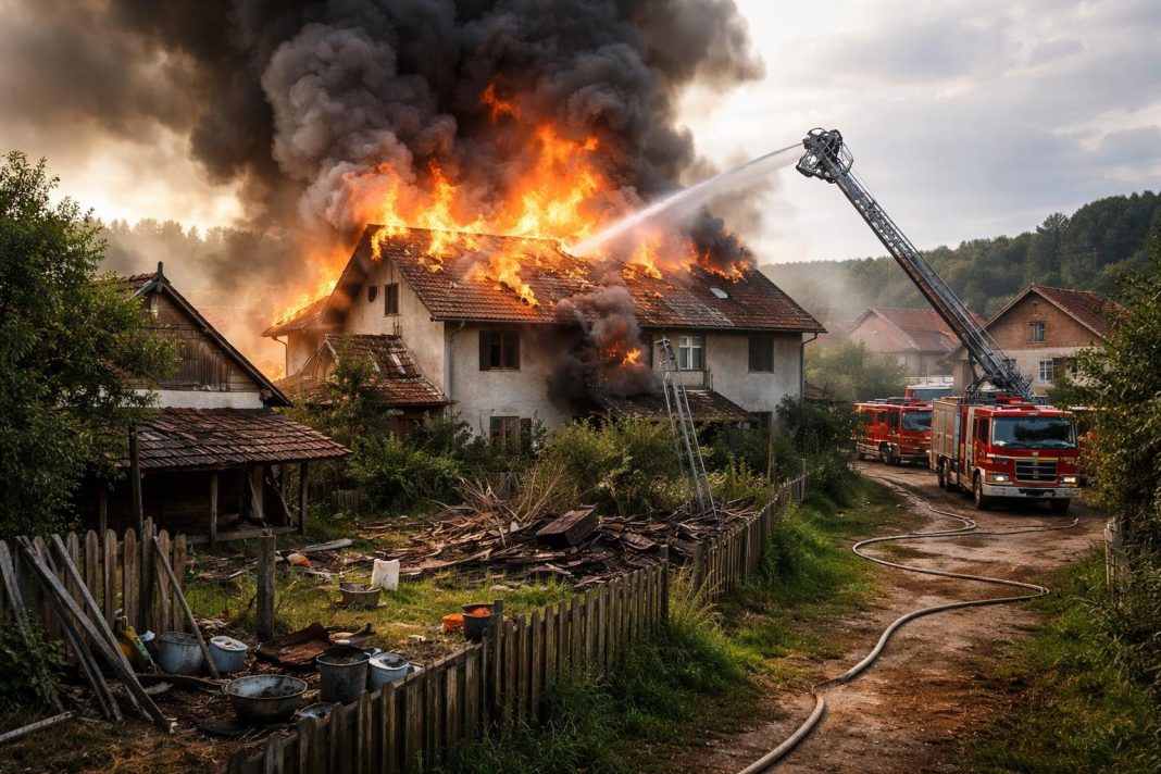 ARGEȘ, HÂRSEȘTI: INCENDIU PUTERNIC LA O VILĂ – INTERVENȚIE ISU, EVACUĂRI ȘI PAGUBE ÎN DESFĂȘURARE