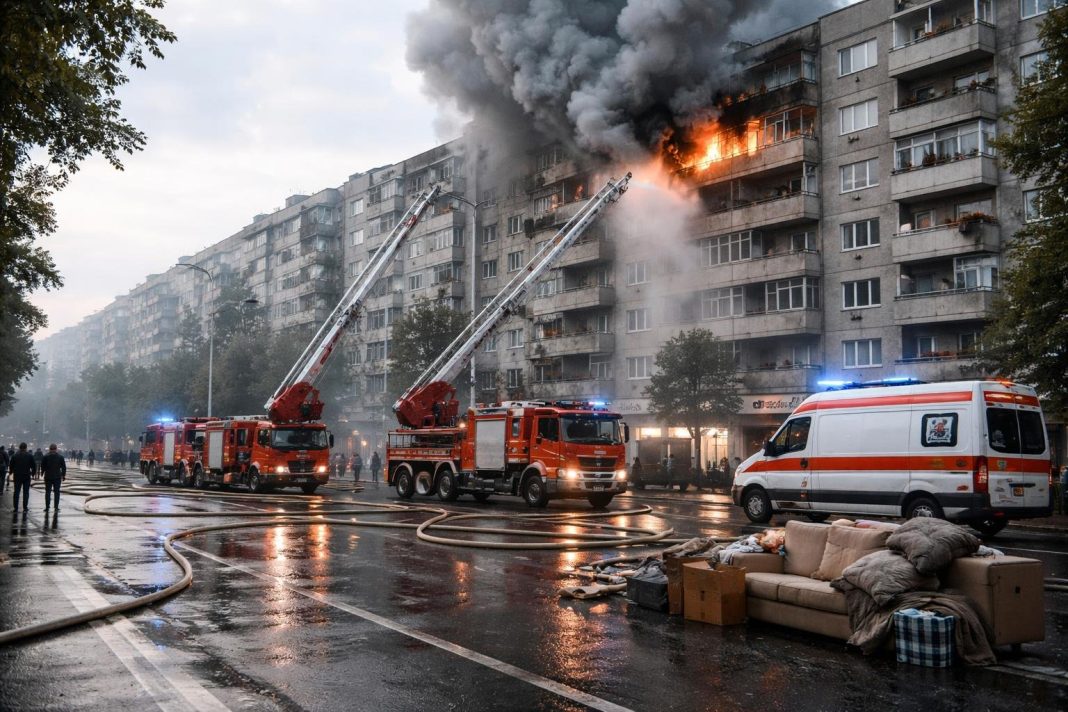 Un incendiu puternic a izbucnit în această dimineață într-un apartament din Craiova, pe Bulevardul Dacia, blocul 27. Conform ISU Dolj, flăcările au cuprins locuința dintr-un bloc de locuințe, iar intervenția pompierilor a fost lansată de urgență.